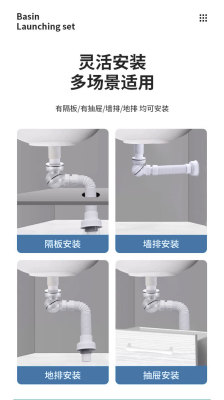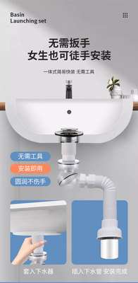 Odor-Proof Undermount Drain Pipe Horizontal Space-Saving Drain Swivel Anti-Odor Bathroom Sink Lavatory Basin Accessory Set