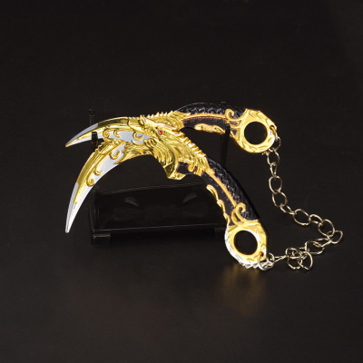 Game Peripheral Zinc Alloy Toy Five-clawed Dragon with Chain Dual Swords Model Weapon Prop 11cm