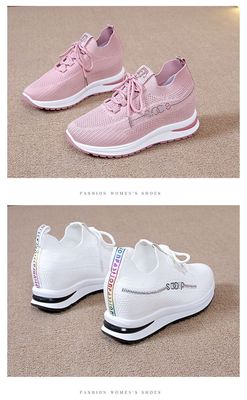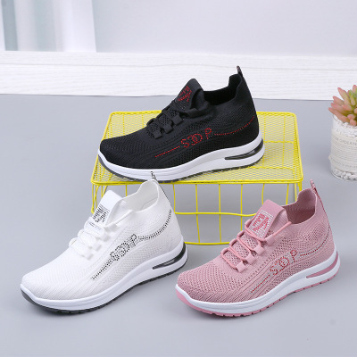 Inner height increasing women's shoes 2024 autumn new white shoes women's mesh soft sole breathable fly woven casual sports shoes wholesale