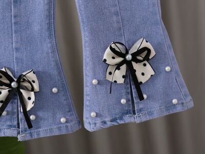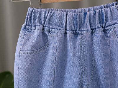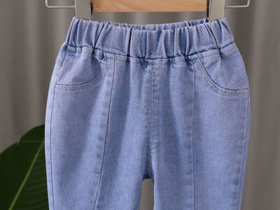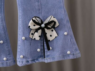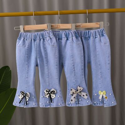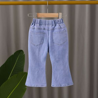 2024 New Autumn Girls' Korean Style Denim Pants for Kids, Ins Elastic, Trendy Baby Spring and Autumn Split Flared Pants