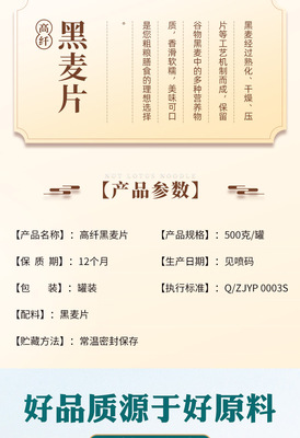 Packaging Specification: Xiaolu Food [High Fiber Rye Flakes] 500g/Can