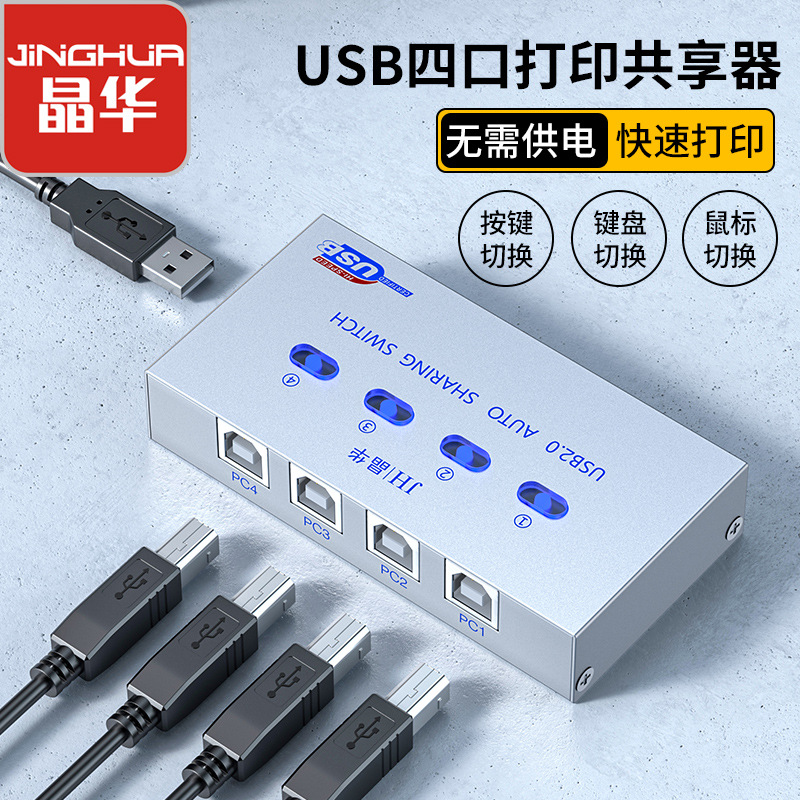 晶華USB4口u401自動打印共享器 USB切換器 4台電腦共享一台打印機
