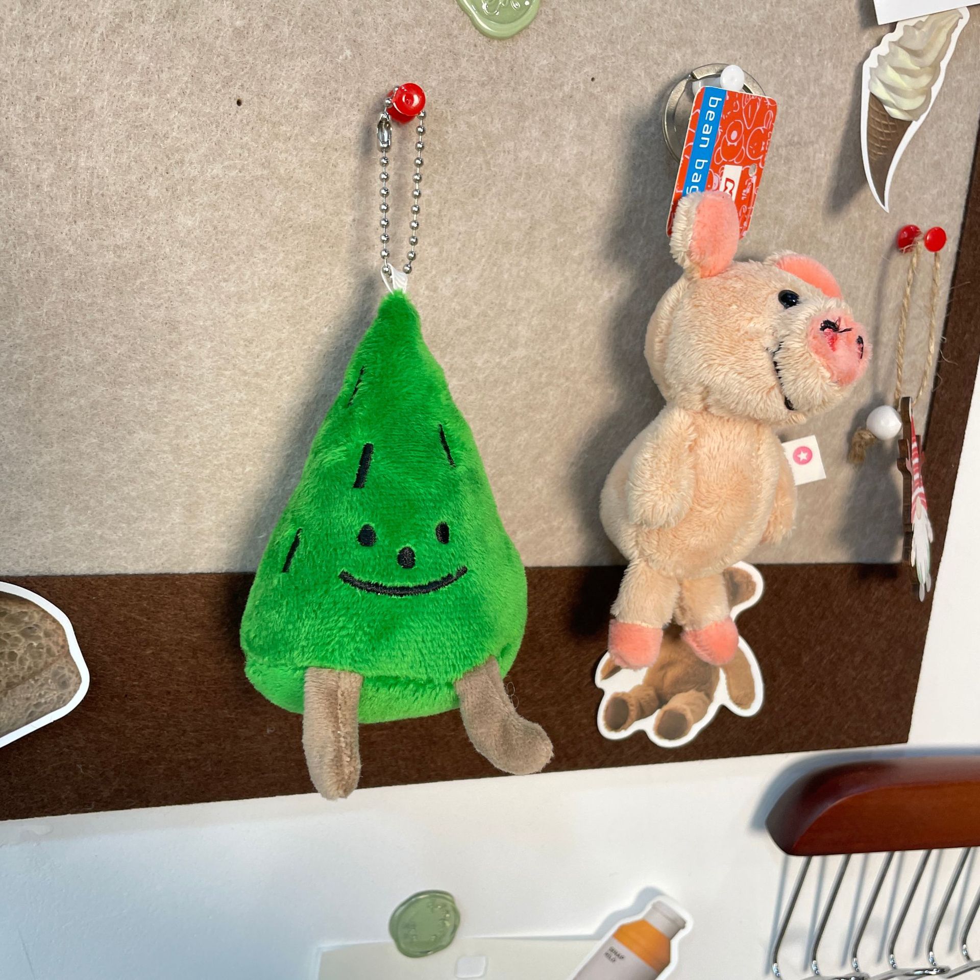 Smiling Pine Tree Charms Cute Figure Student Couple School Bag Car Keychain Ornament Christmas Gift BH199