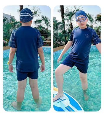 Loose-fit plus-size swimwear for boys: oversized, roomy split-style swimsuits and youth-sized swimming trunks—perfect for kids' swimwear sets.