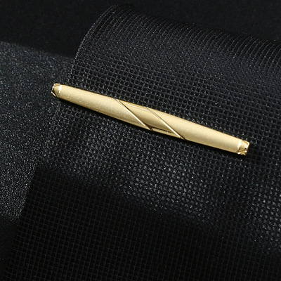 亞馬遜男士領帶夾銅質金色條紋磨砂奢雅時尚百搭結婚新郎領帶裝飾