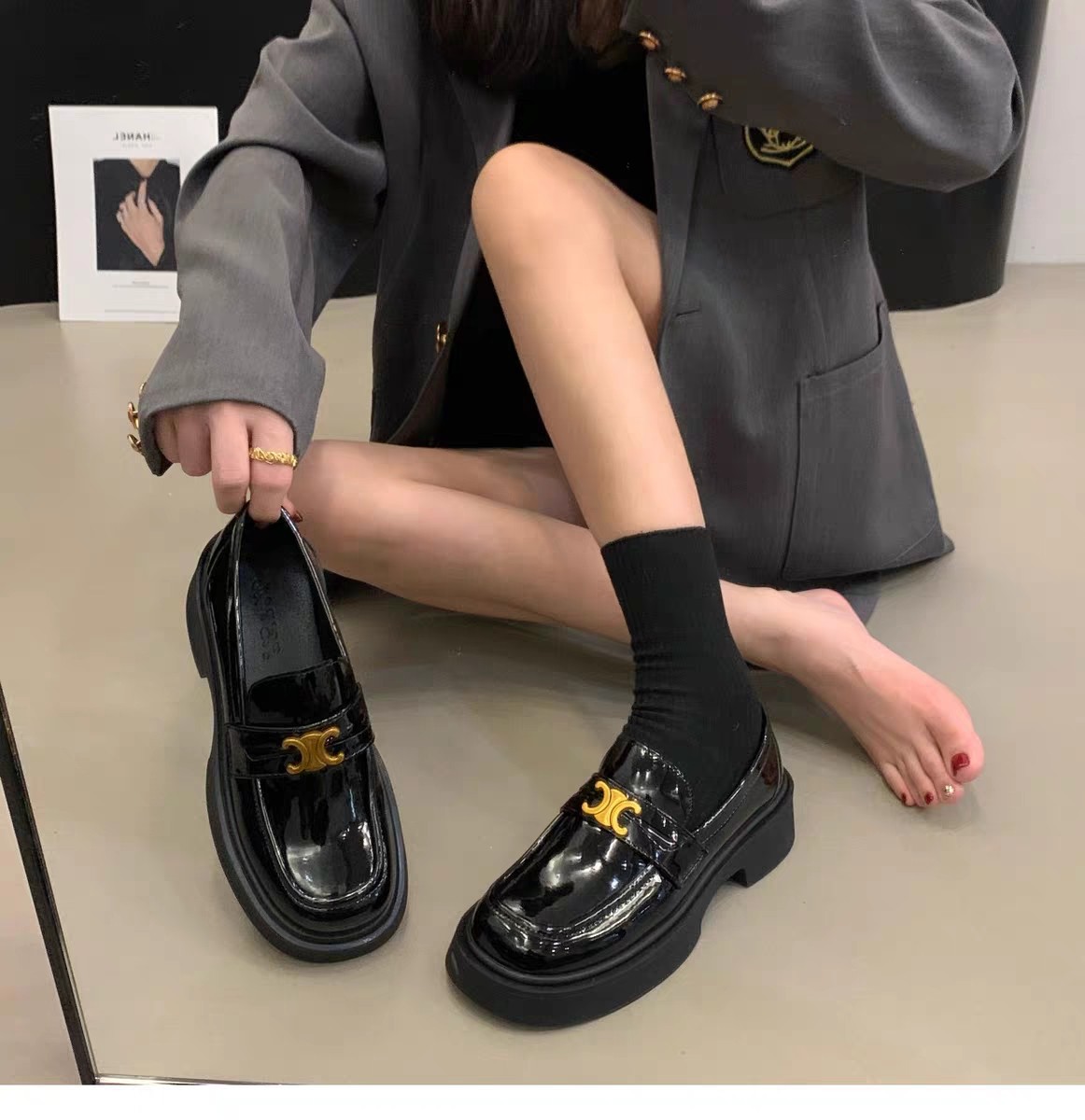 厚底復古百搭英倫風小皮鞋女鞋子2023年黑色春季秋冬樂福單鞋