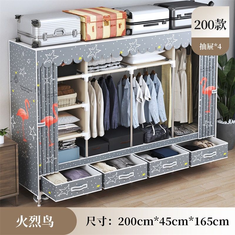zsr simple assembly wardrobe home bedroom rental house cloth wardrobe non-solid wood children's clothes hanger