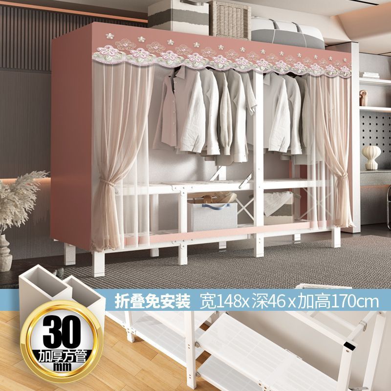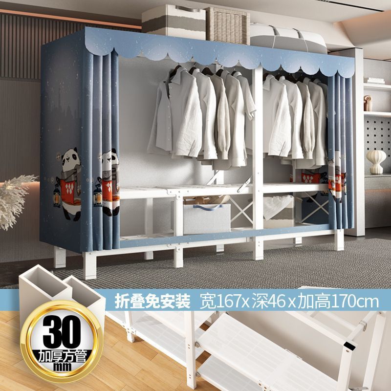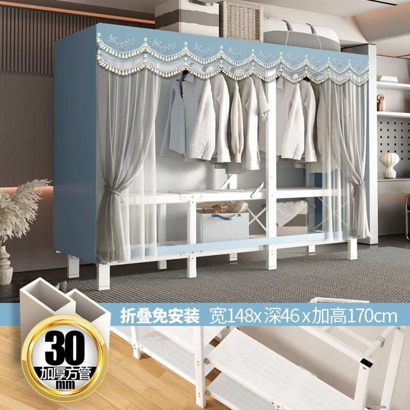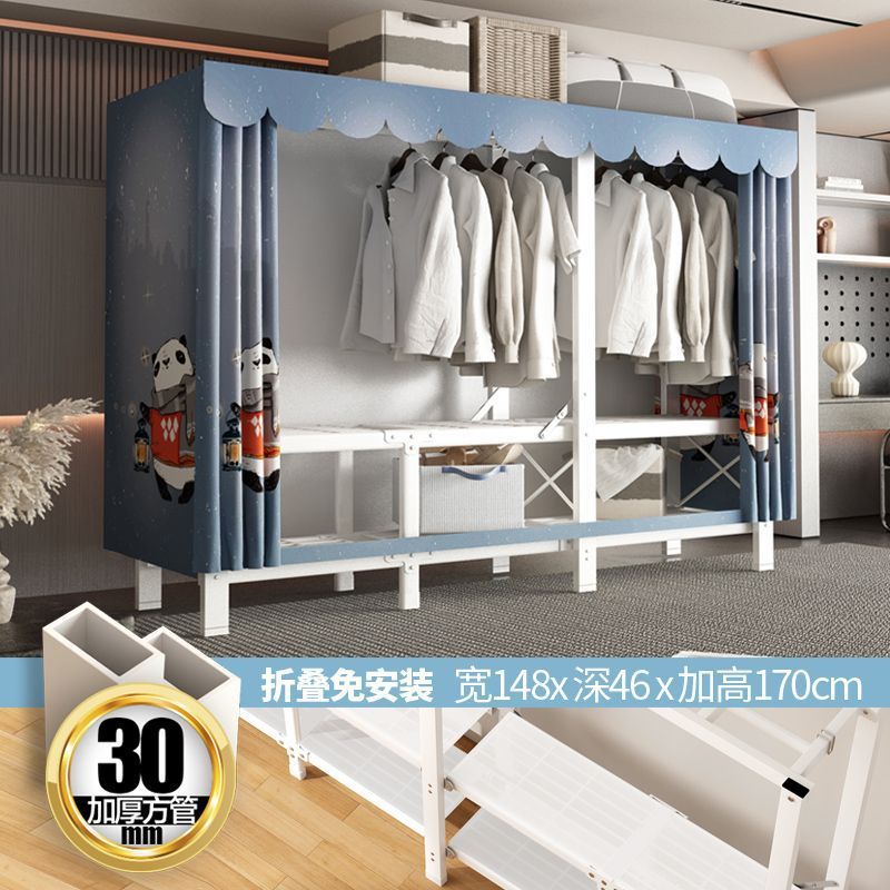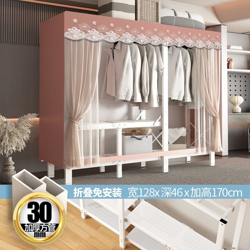 zsr simple cloth wardrobe steel pipe thickened and reinforced anti-rust stainless steel assembly single and double clothes hanger storage