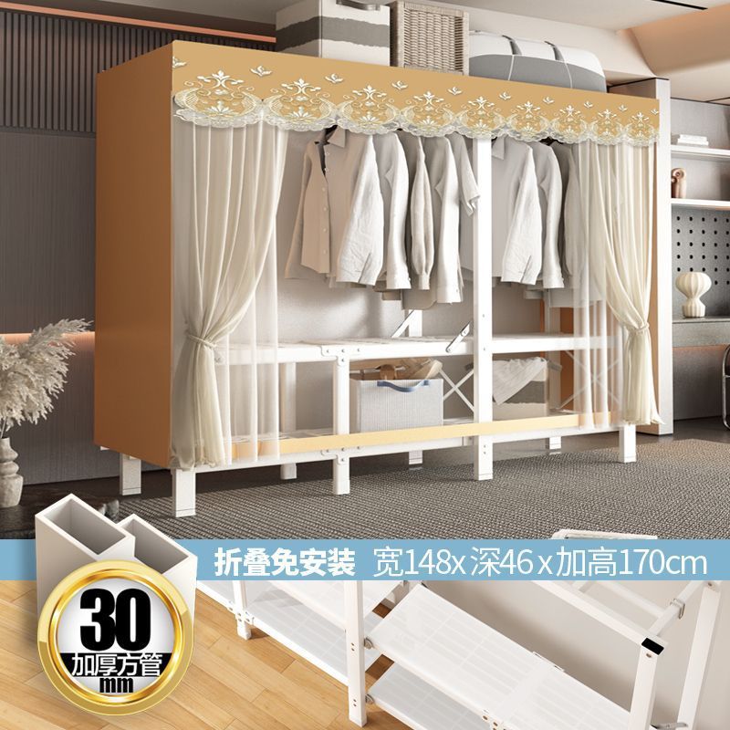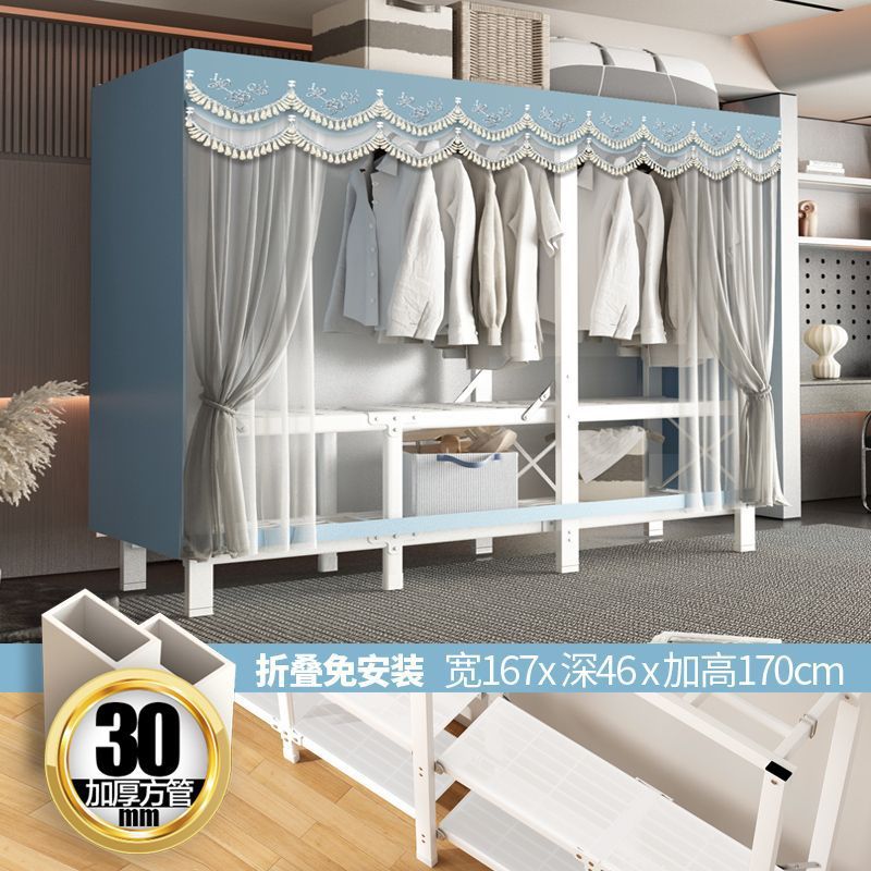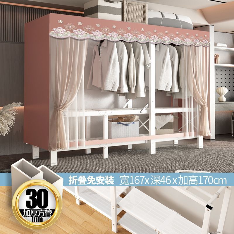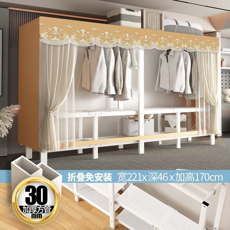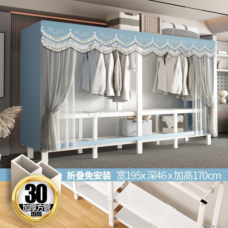 zsr simple cloth wardrobe steel pipe thickened and reinforced anti-rust stainless steel assembly single and double clothes hanger storage