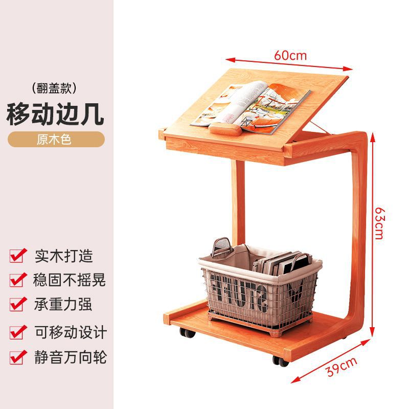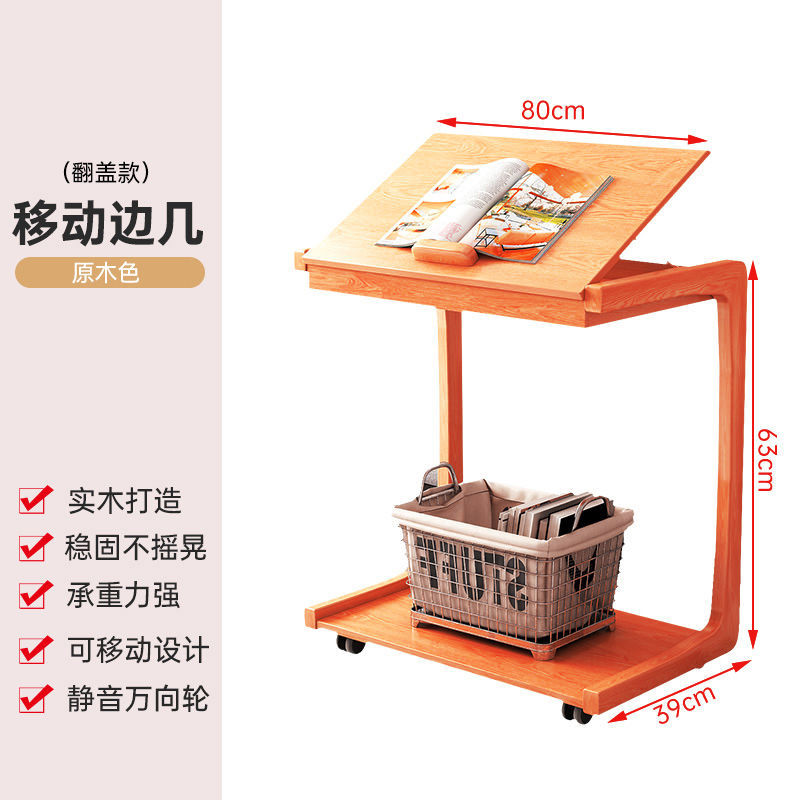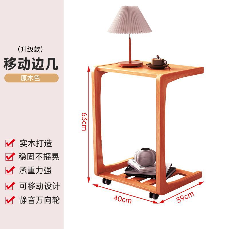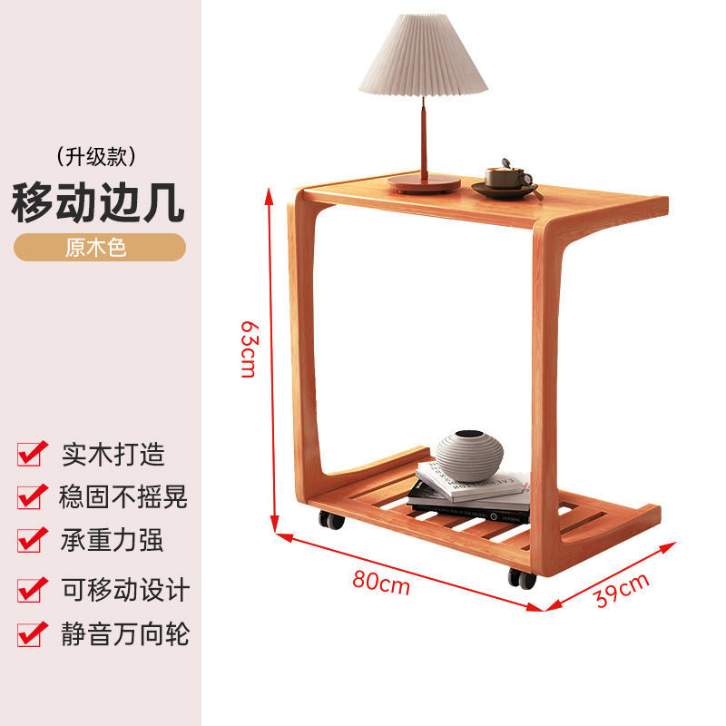 zsr實木床邊桌可移動邊幾u型邊幾帶輪沙發邊幾ins風角幾網課學習