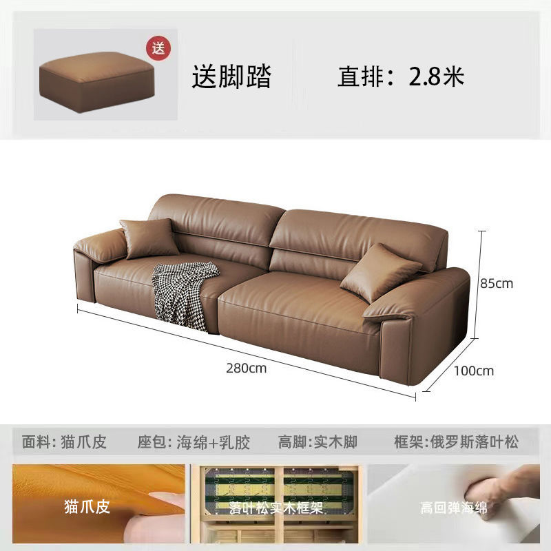 3L Italian Minimalist Cat Claw Genuine Leather Sofa for Home, Modern & Simple Design, High-End Leather Craftsmanship, Perfect for Compact Living Spaces