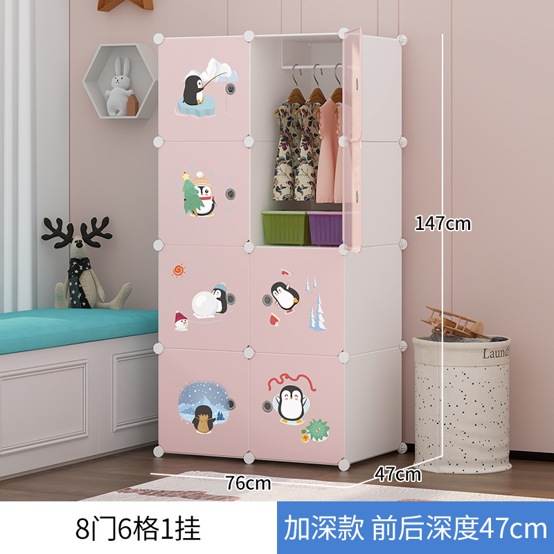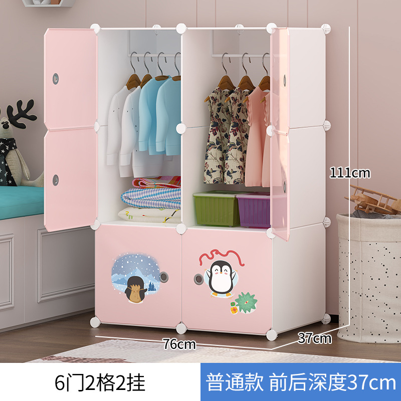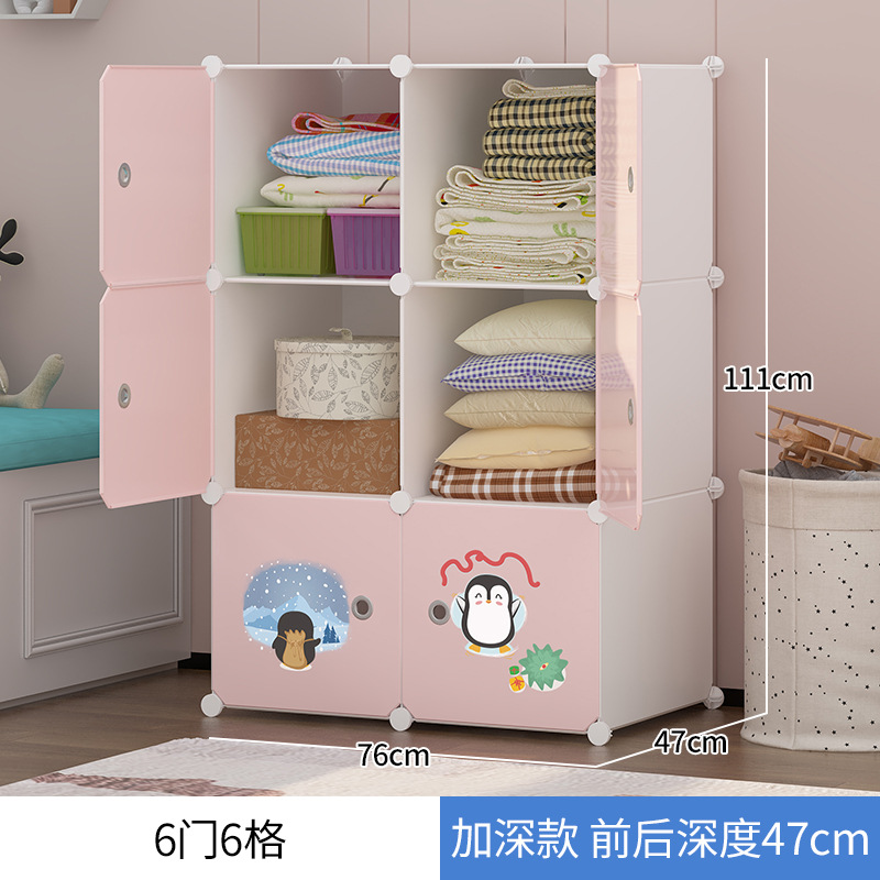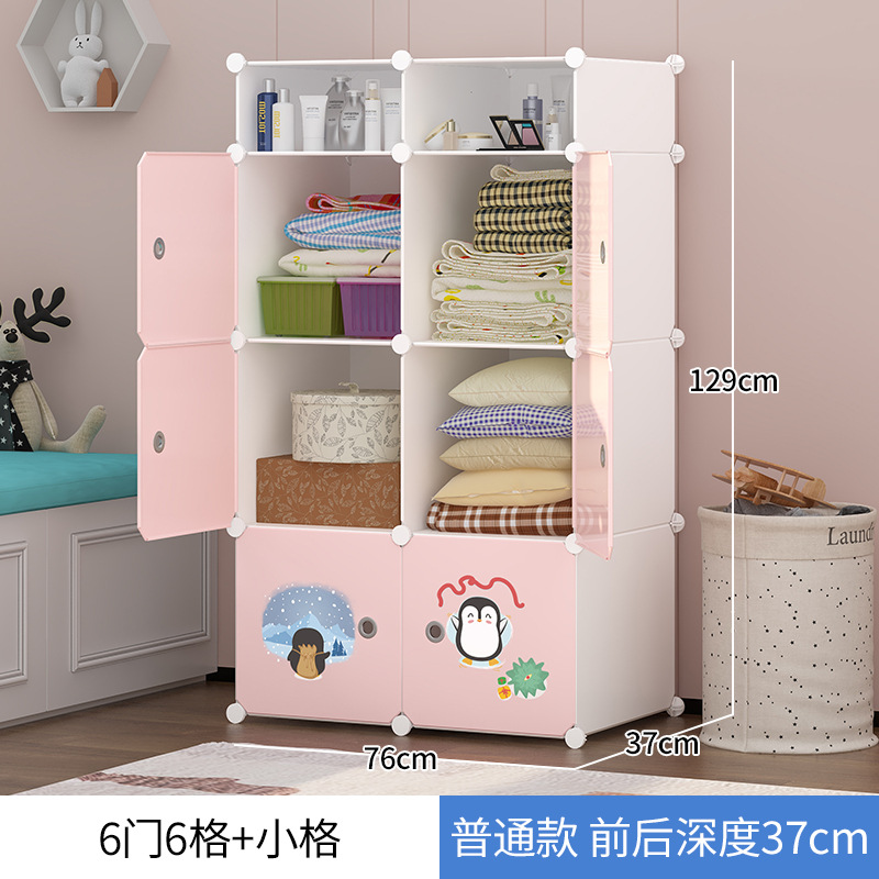 淡雅粉6門6格帶置物架