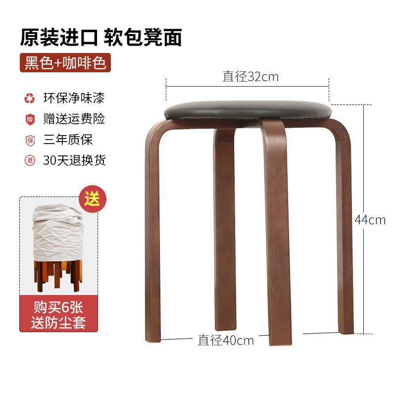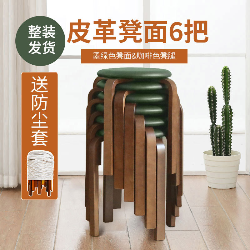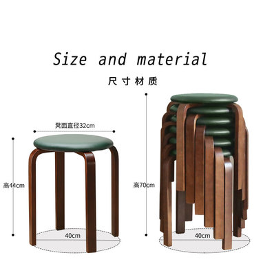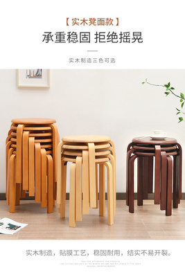 實木凳子家用小板凳可疊放客廳圓凳木頭凳簡約軟座餐凳收納高凳