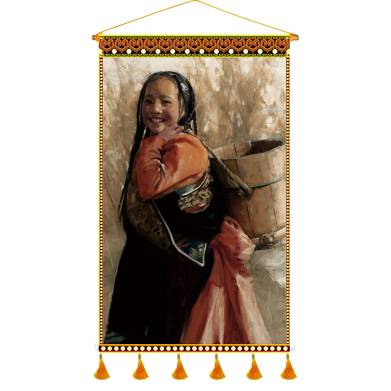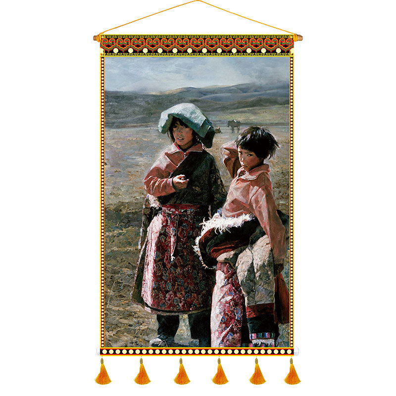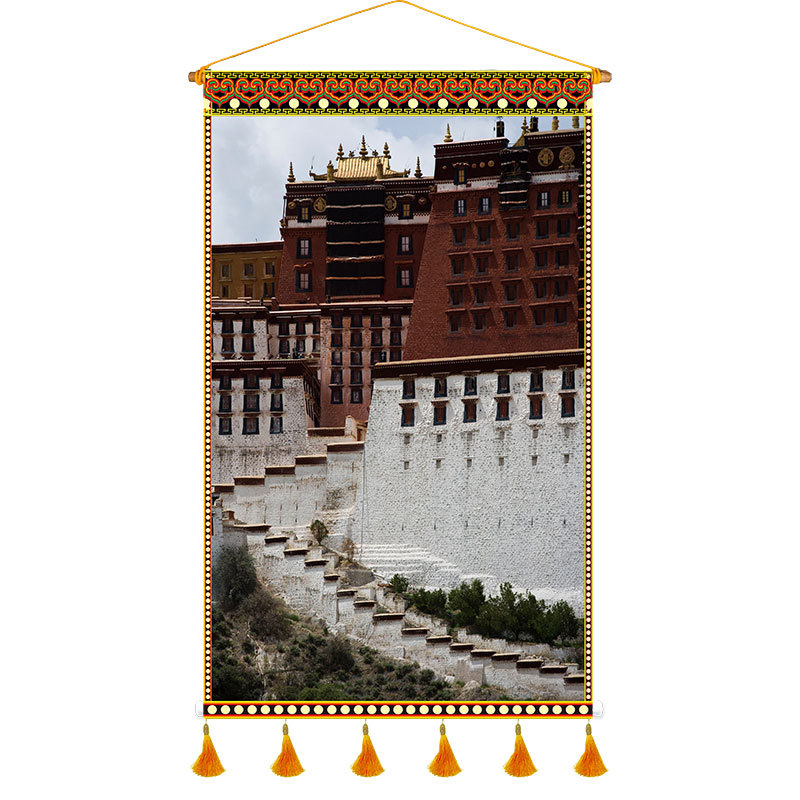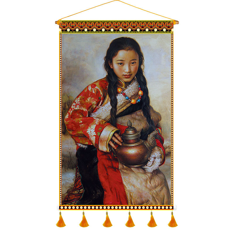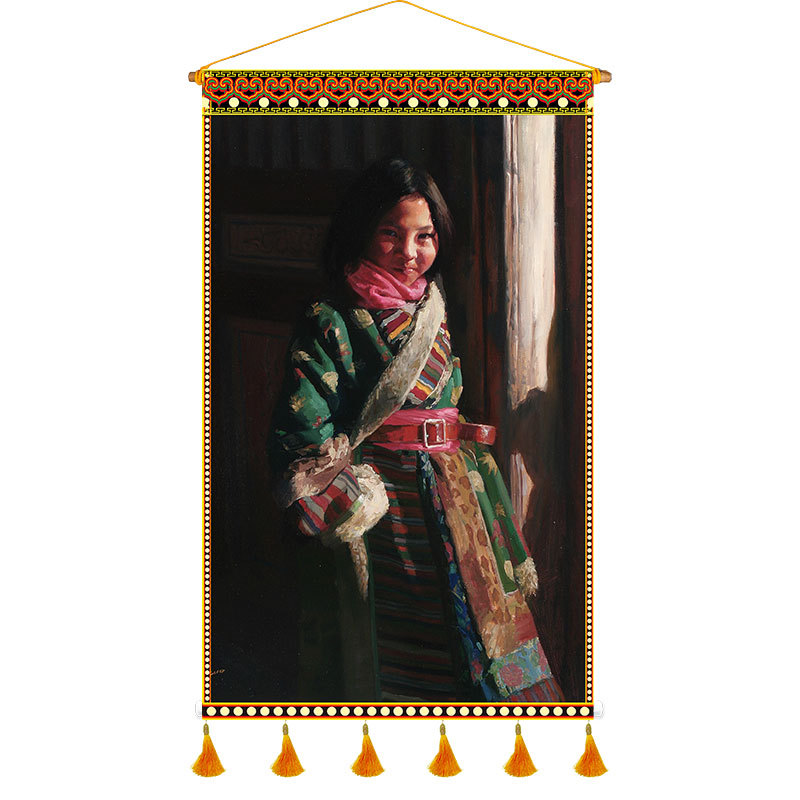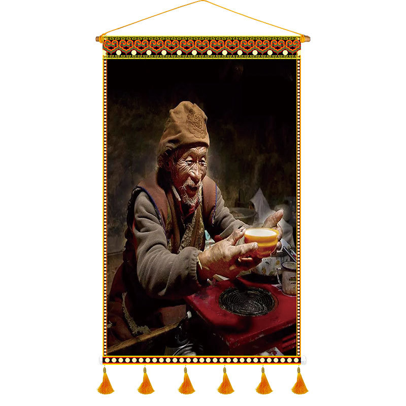 P616 Tibetan Restaurant Fabric Artwork Tapestry Tibetan Cultural Elements Character Homestay Inn Canvas Wall Decor