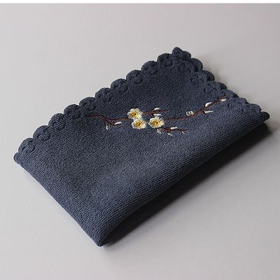 Absorbent tea towel square embroidery thickened tea ceremony accessories pot mat zen cotton linen tea tray cloth retro stock handling