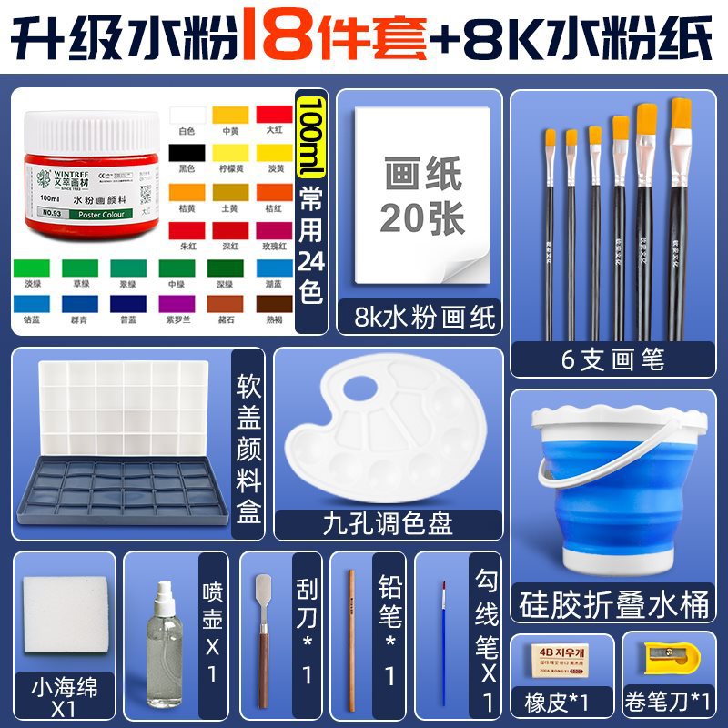 Children's Watercolor Paints Set, Black and White, Bulk 24-Color Set, Art Supplies for Painting Blackboards and Wall Newspapers