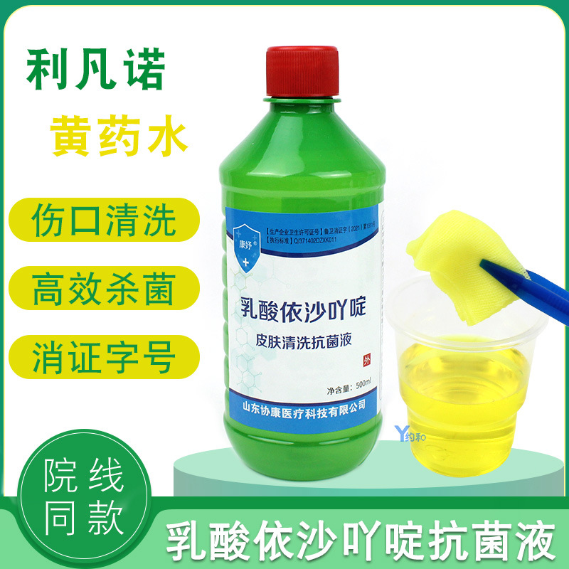 乳酸依沙吖啶抑菌液 100/500ml黃藥水 利凡諾傷口皮膚清洗抗菌液