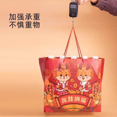 規格型號:顏色:吉祥龍【龍年大吉】;尺寸:大號32*30*12CM;提手尺寸(長*寬):一份5個