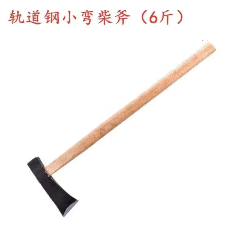 Model: 6 pounds - forged bent firewood ax - with wooden handle