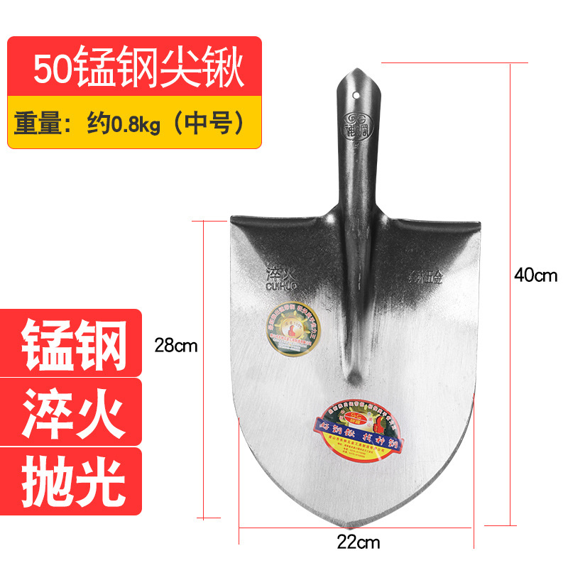 規格:錳鋼淬火尖鍬(中號)