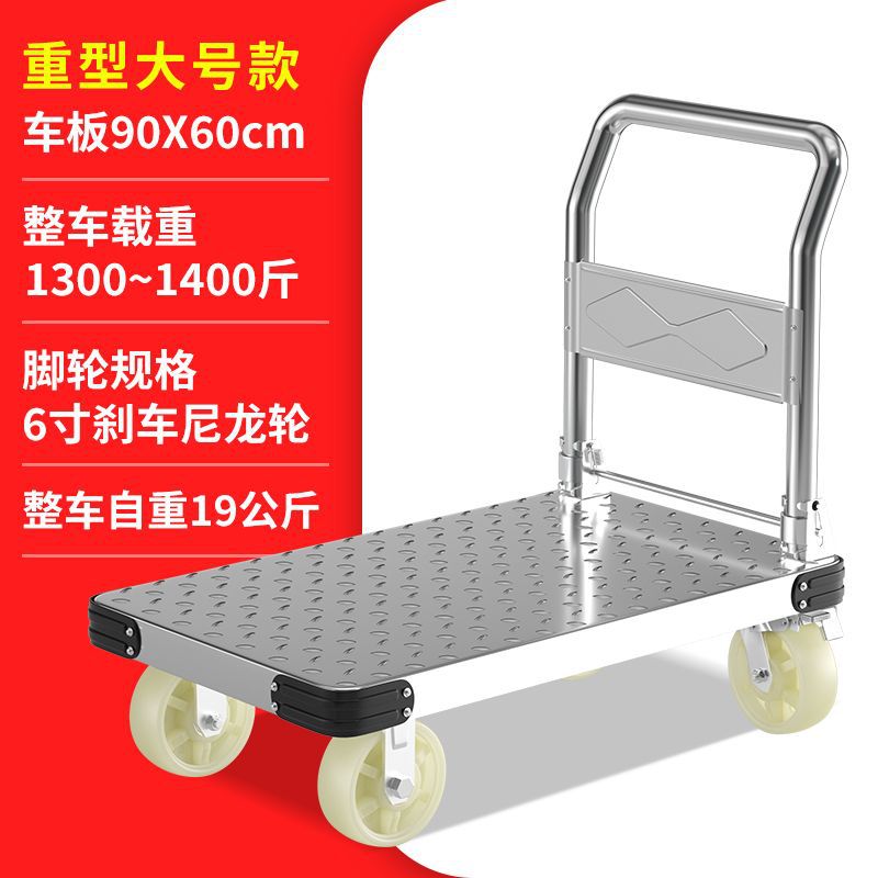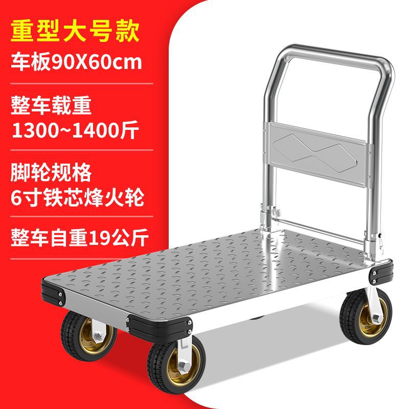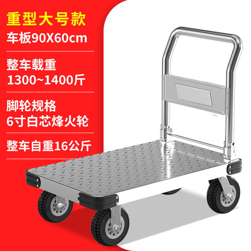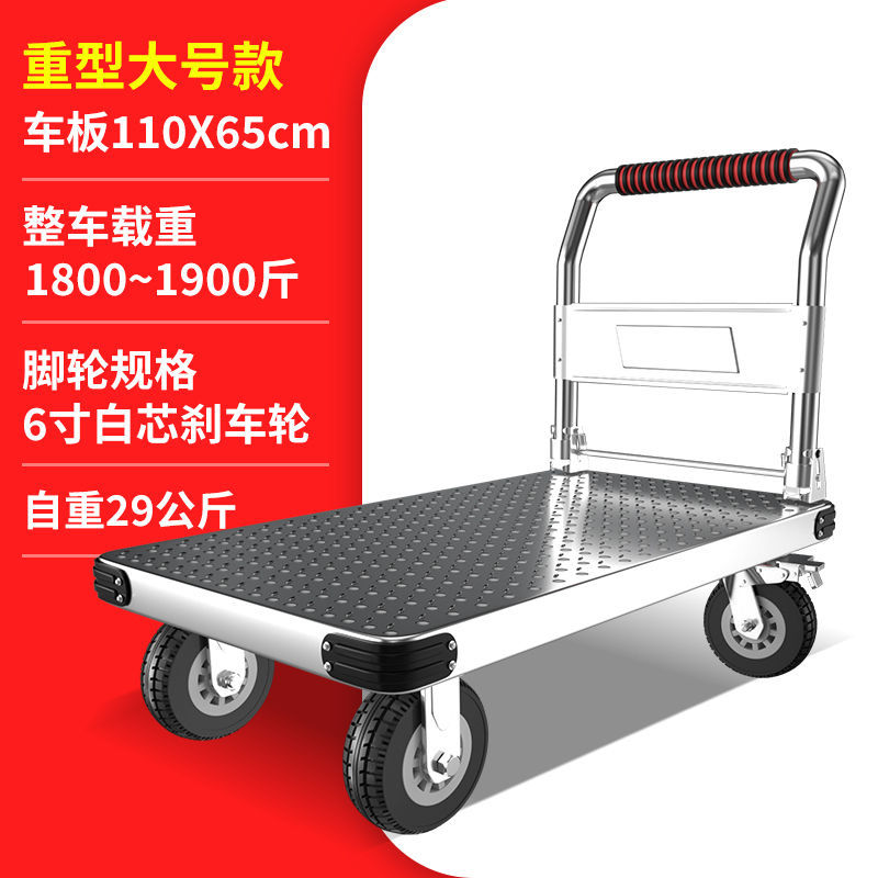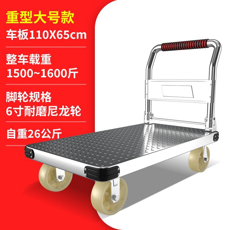 鋼板平板車小推車搬運車便攜摺疊手推板車快遞小拉車加厚四輪拖車