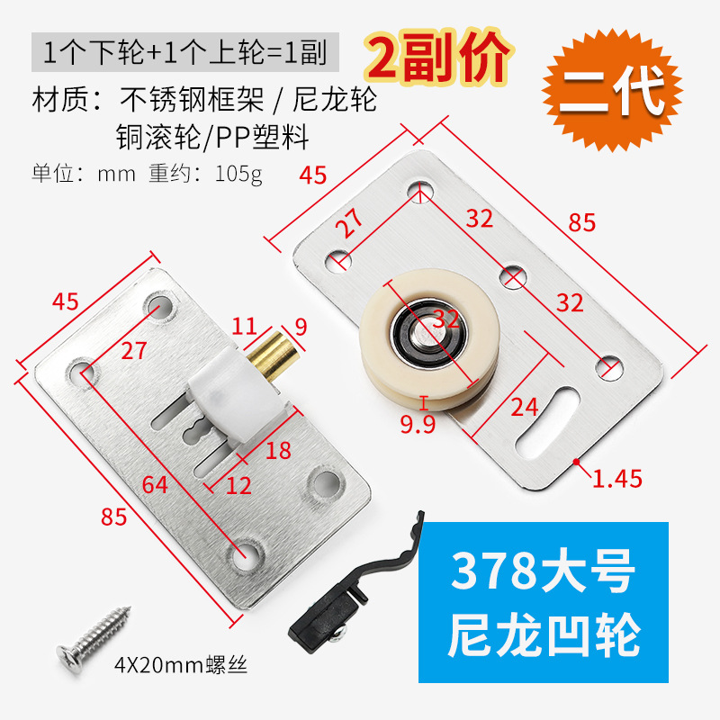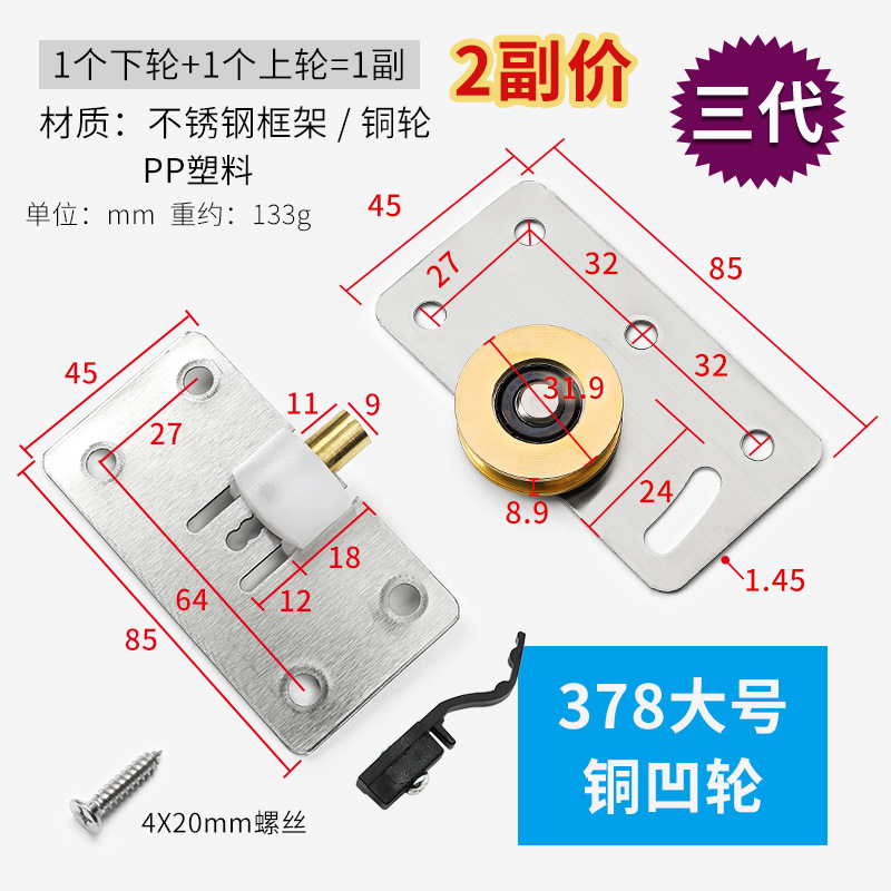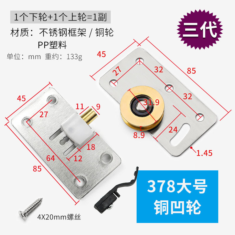 型號:鐵殼378大號凹輪+上輪【各2個】