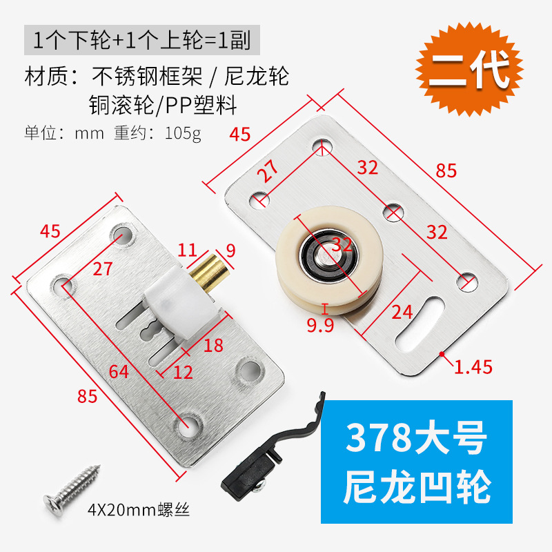 型號:二代鋼殼378大號尼龍凹輪【1副價】
