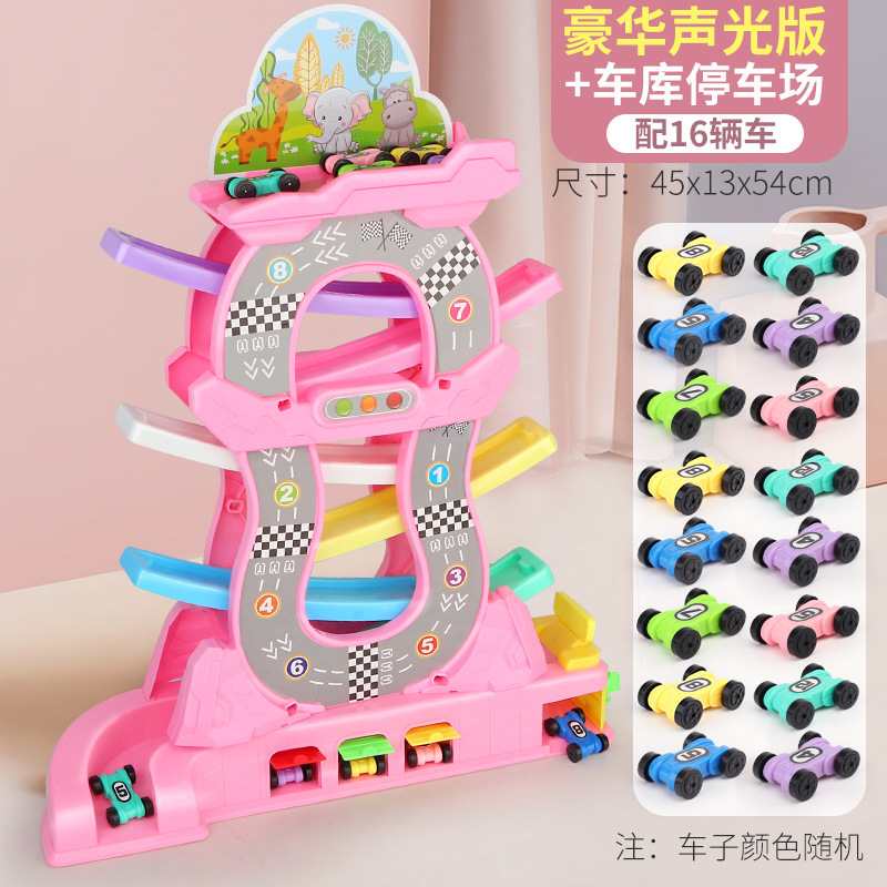 粉色6軌道16車+燈光音樂車庫