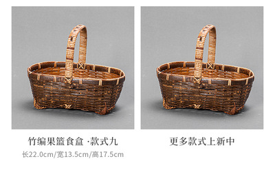 Handmade bamboo woven basket, vintage style small handle basket, fruit picking basket, snack storage basket, retro woven storage basket