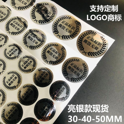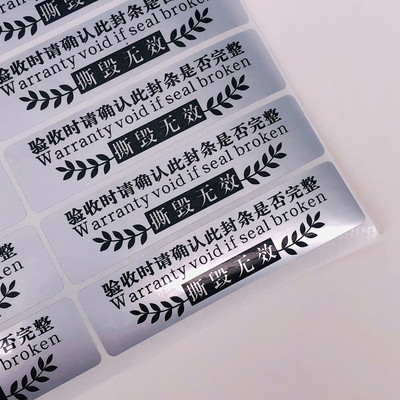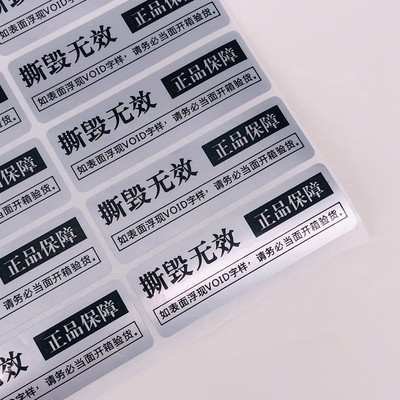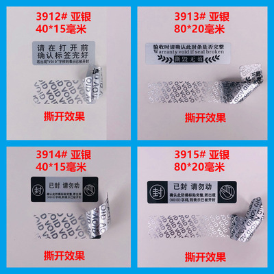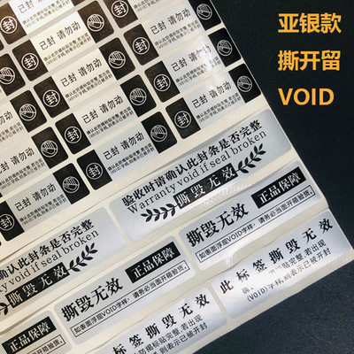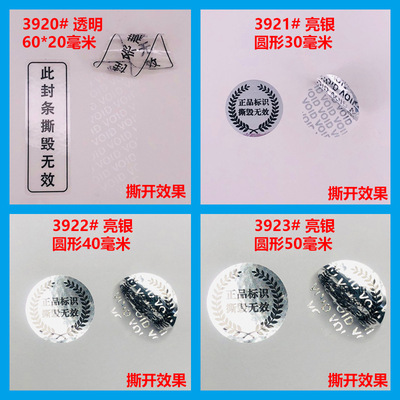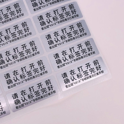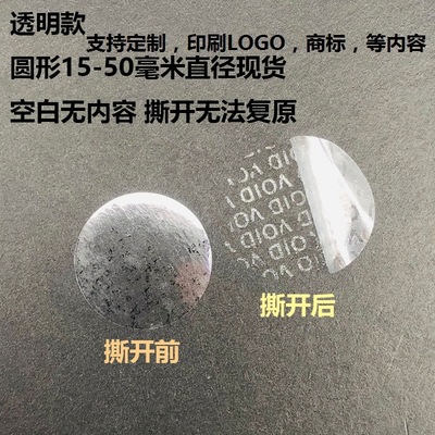 VOID一次性防拆標透明圓形封口標亞銀撕開留字不乾膠貼紙