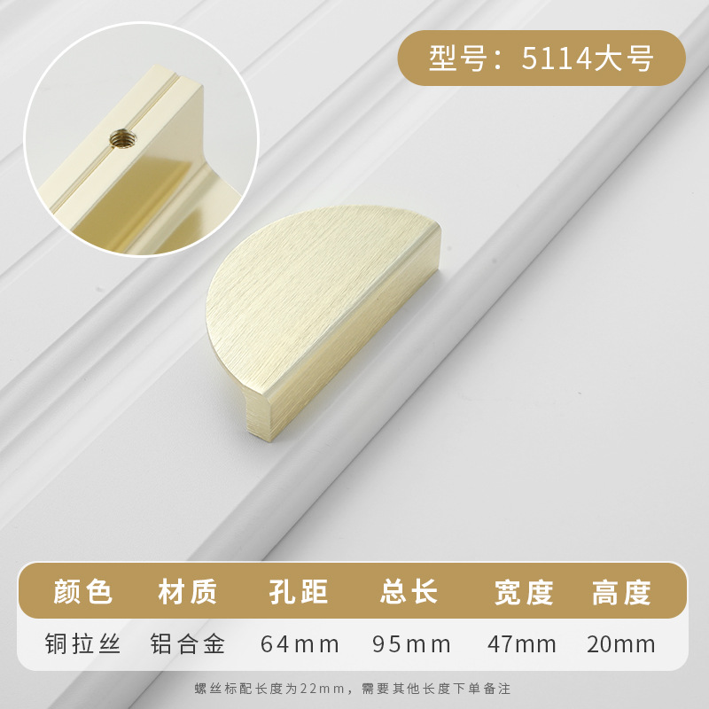 現代簡約半圓鋁合金對裝金色拉手 北歐風櫃門櫥櫃抽屜衣櫃門把手