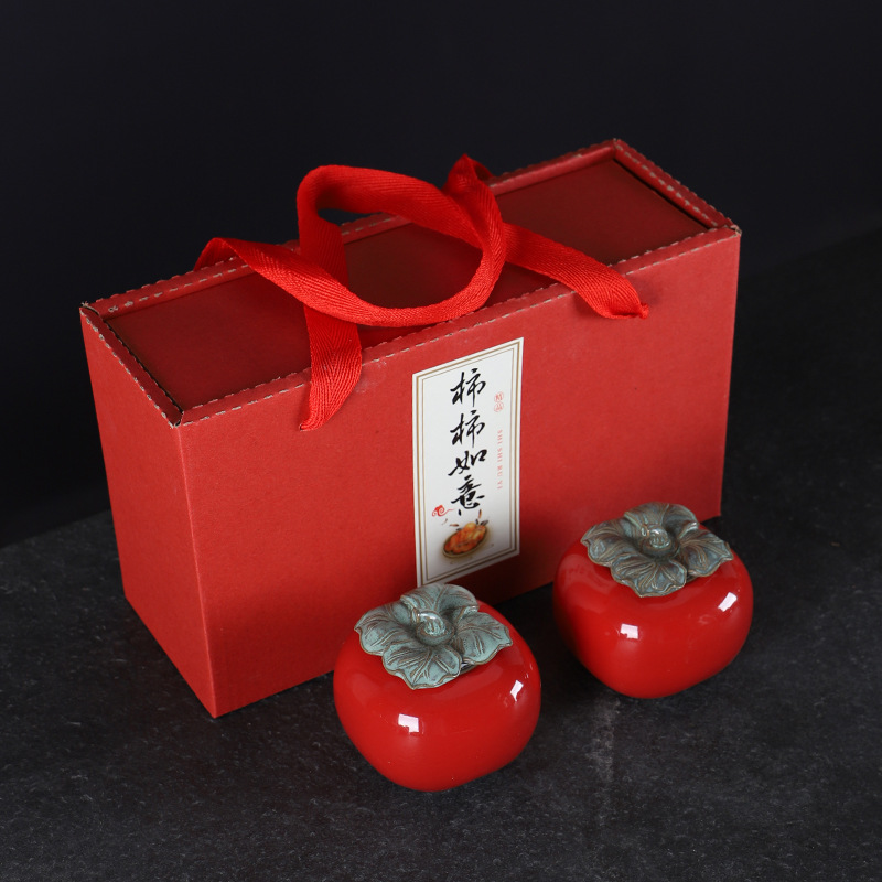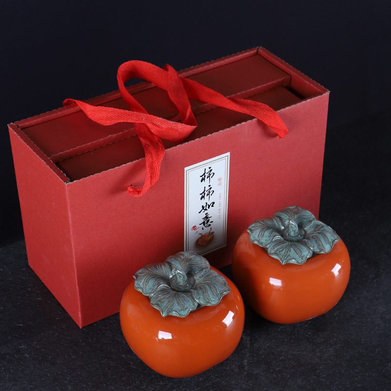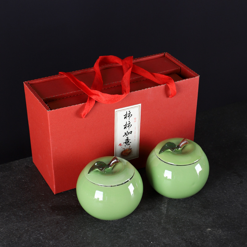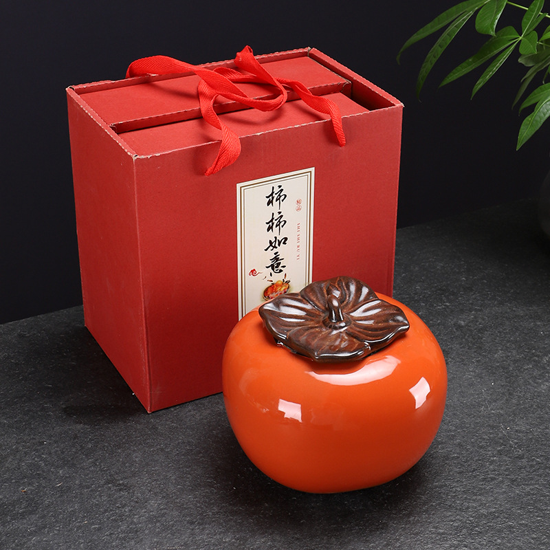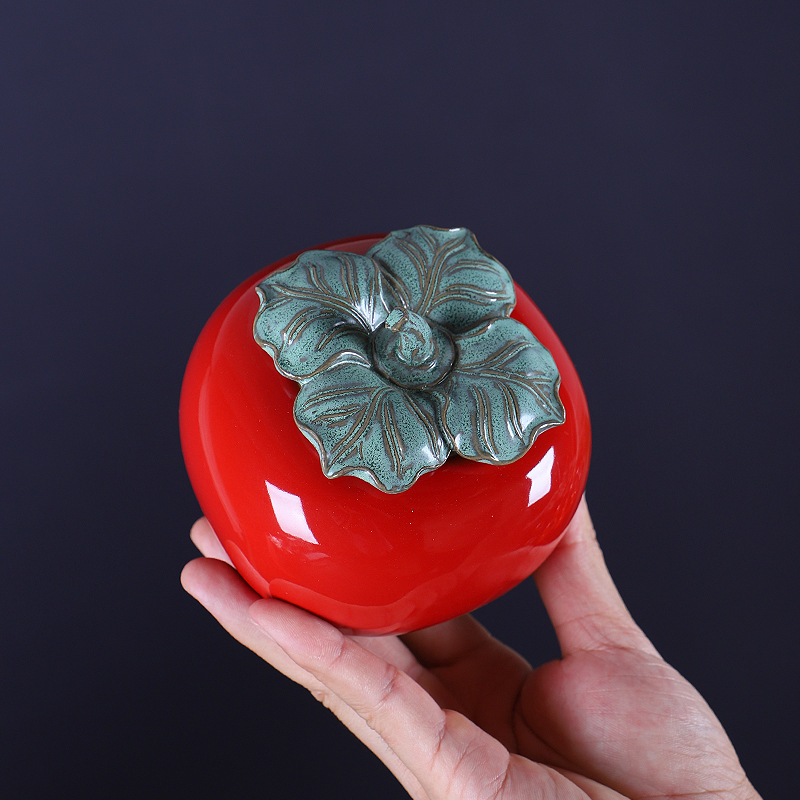 Creative Ceramic Persimmon Tea Can Apple Storage Seal Can Green Tea Pu-erh Tea Can Wedding Gift Handout Logo Customization