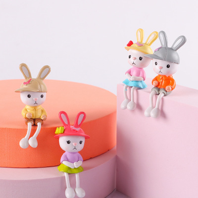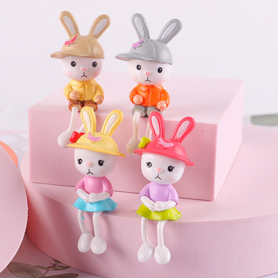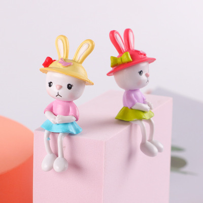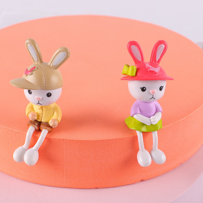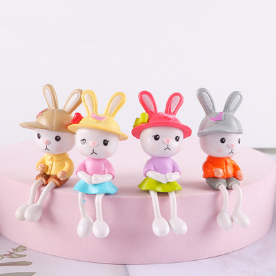 Factory cute PVC hat-wearing long-legged rabbit figure wholesale, car dashboard decoration cute rabbit keychain accessory wholesale