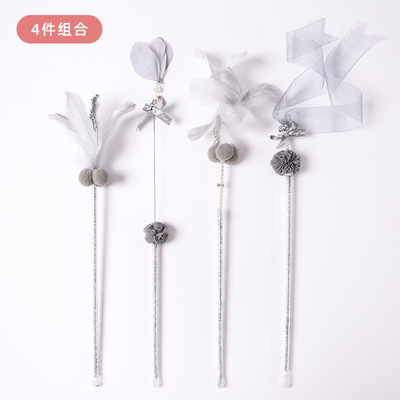Feather Wand for Cat Play, High-Grade Grey