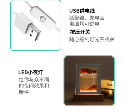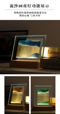Quicksand Painting Night Light USB Living Room Creative Atmosphere Light Bedroom Office Desktop Decoration Hourglass Painting Pendulum