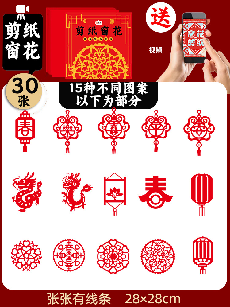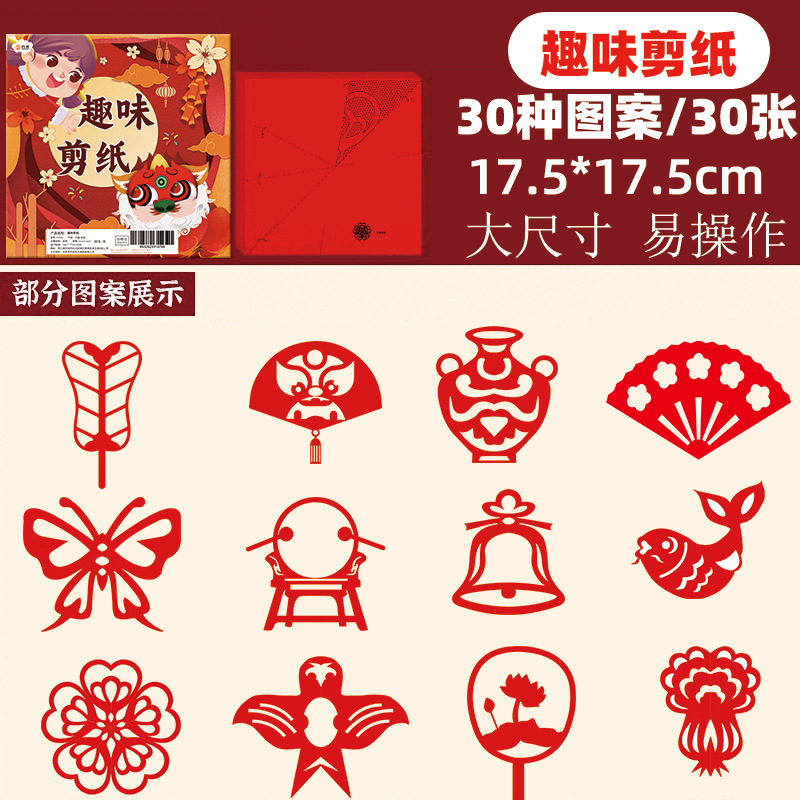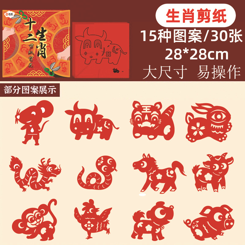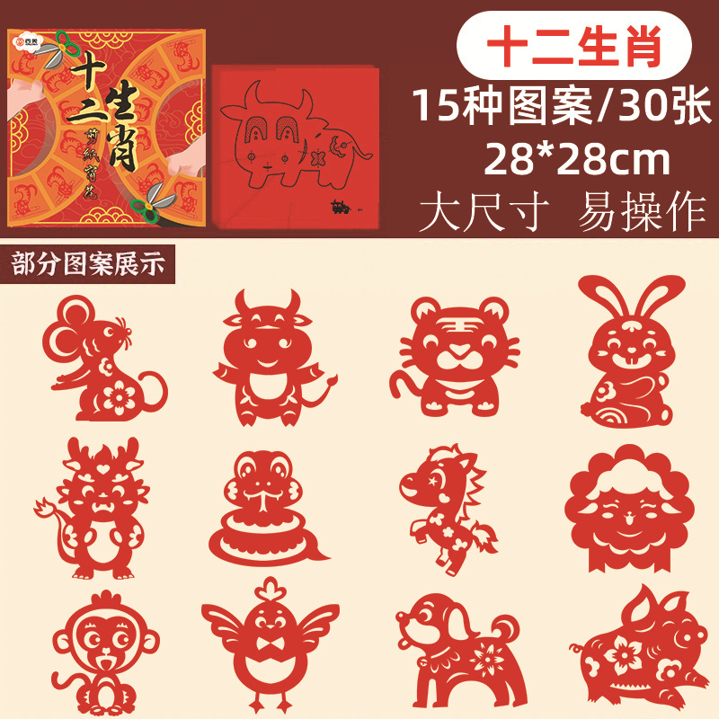 New Year paper-cut window decorations, Spring Festival pattern drafts, semi-finished products, kids' DIY craft materials, zodiac-themed fun items with Chinese flair