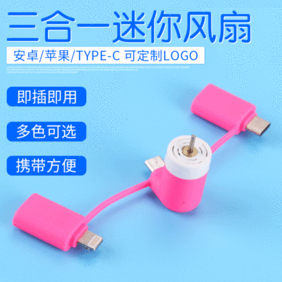 Tri-in-One Short Phone Fan/Apple + Android + Huawei Type-C Port