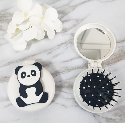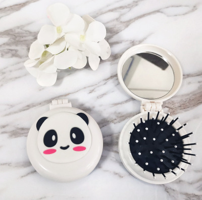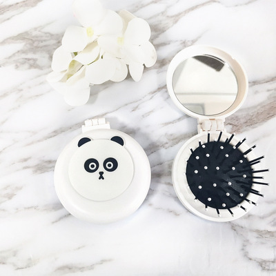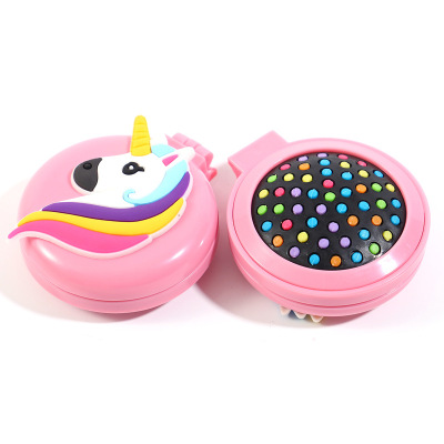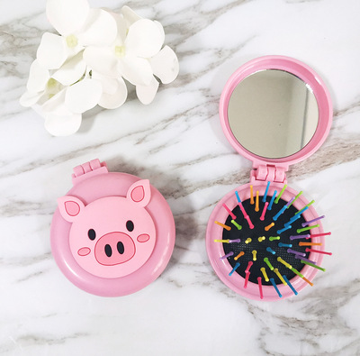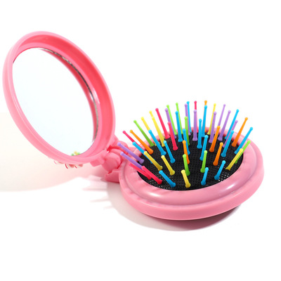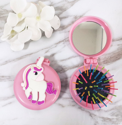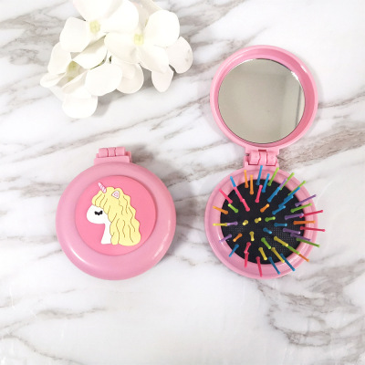 兒童可愛卡通小馬圓形彩色梳齒氣囊梳子便攜摺疊氣墊梳鏡一體