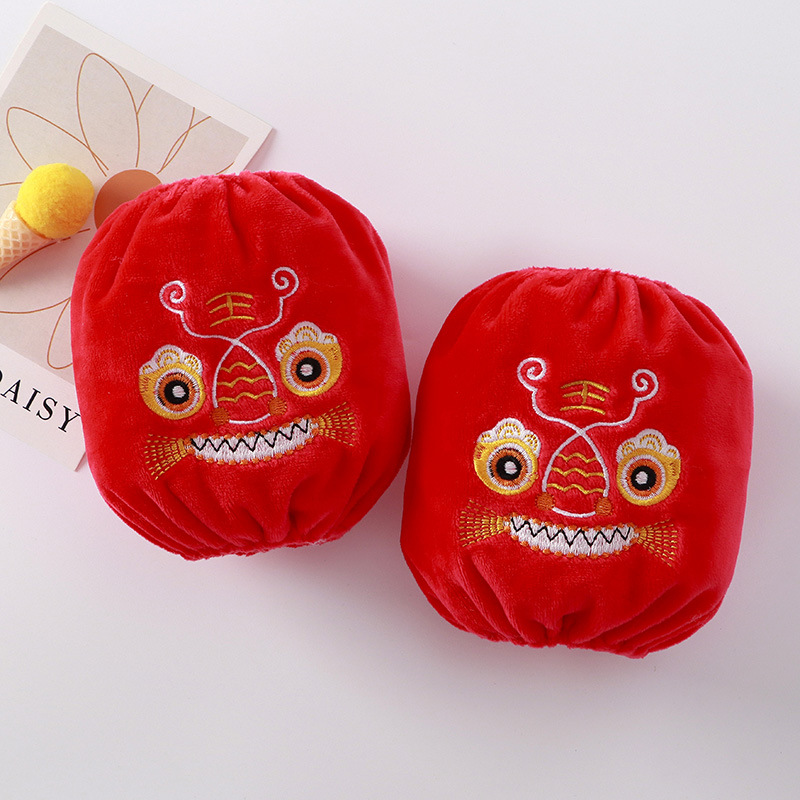 Baby New Year Glove Suits with Dragon Year National Trend Embroidered Cuffs for Boys and Girls, Chinese Style Warmth Protection Sleeves, Spring Festival Red Cover Suits