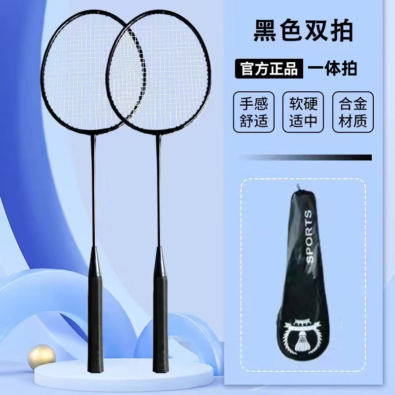 Badminton racket set, integrated frame, anti-break, high elasticity, adult/student durable, black, couple badminton racket, drop shipping one piece.
