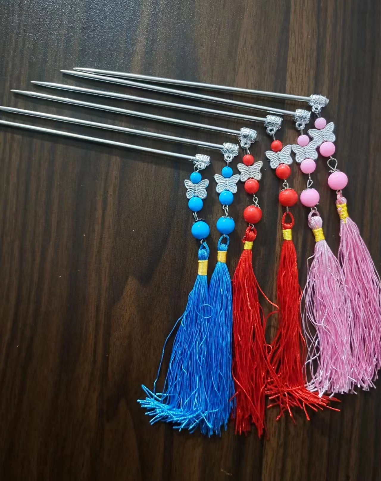 A pair of blue hairpins