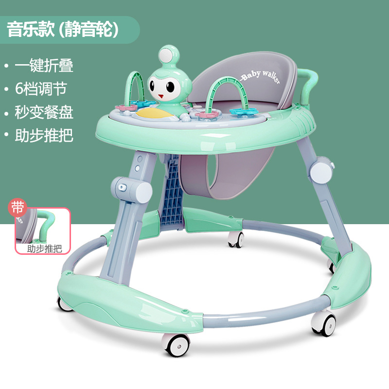 Style upgraded vitality green - silent wheel - toy tray + music and light + foot pad + short push handle (W1)