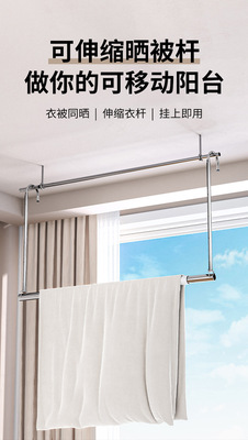Clothes drying rack, household balcony telescopic clothes drying rod lifting clothes drying rod hanging stainless steel punch-free quilt artifact