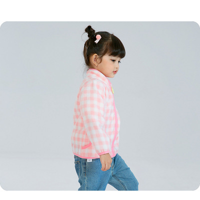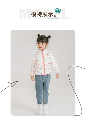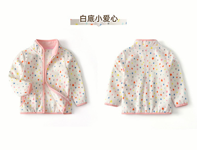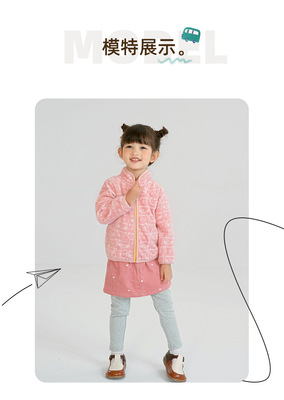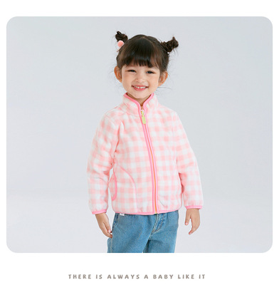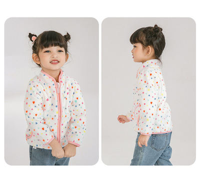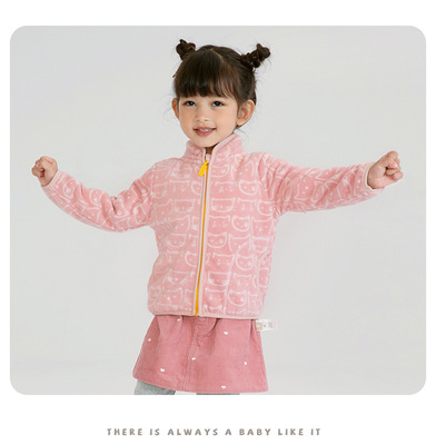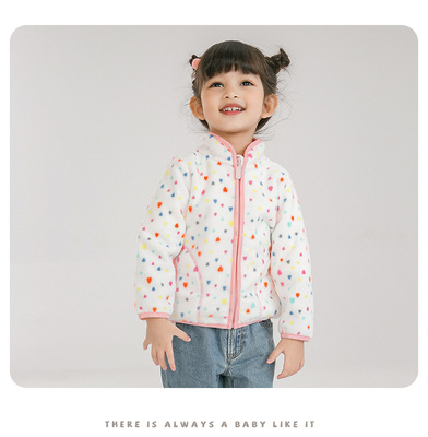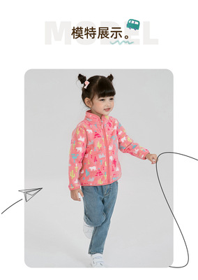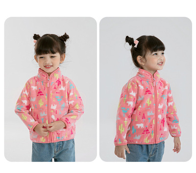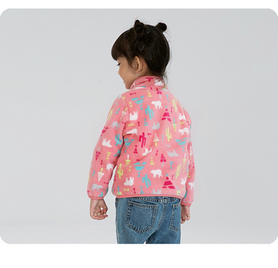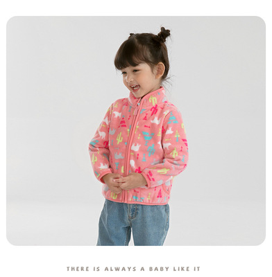 Pink baby girl polar fleece zipper jacket with cute print spring and autumn thin long-sleeved stand-up collar girls top wy1569
