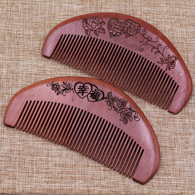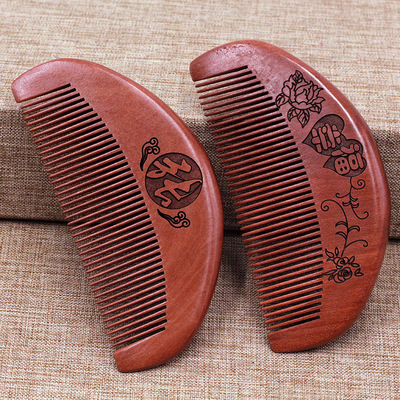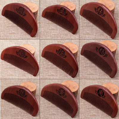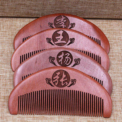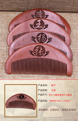 木質百家姓木梳 短款雙面雕刻圖案李王張姓氏梳子隨身攜帶梳批發