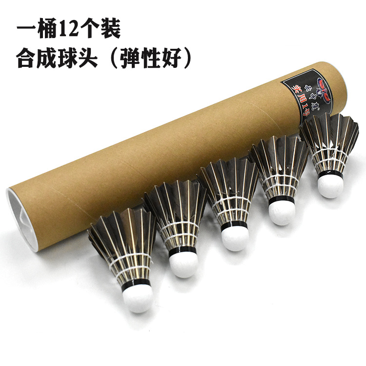 南極風毛羽毛球 12隻裝訓練用鵝毛羽球室內外用耐打黑色羽毛球