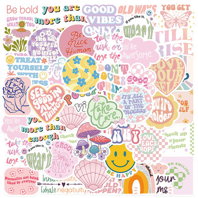 50張勵志少女丹麥風塗鴉貼紙個性裝飾筆記本水杯冰箱滑板車貼畫