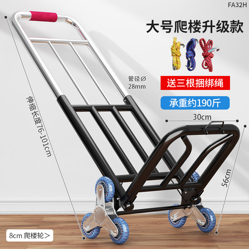 Hand-pulled cart stair climbing - three wheels and 28 tubes