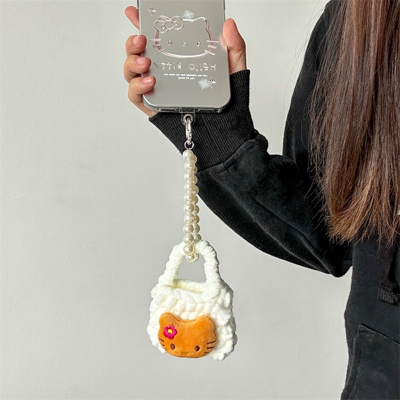 [White] Yellow leather kt wool bag + mobile phone chain
