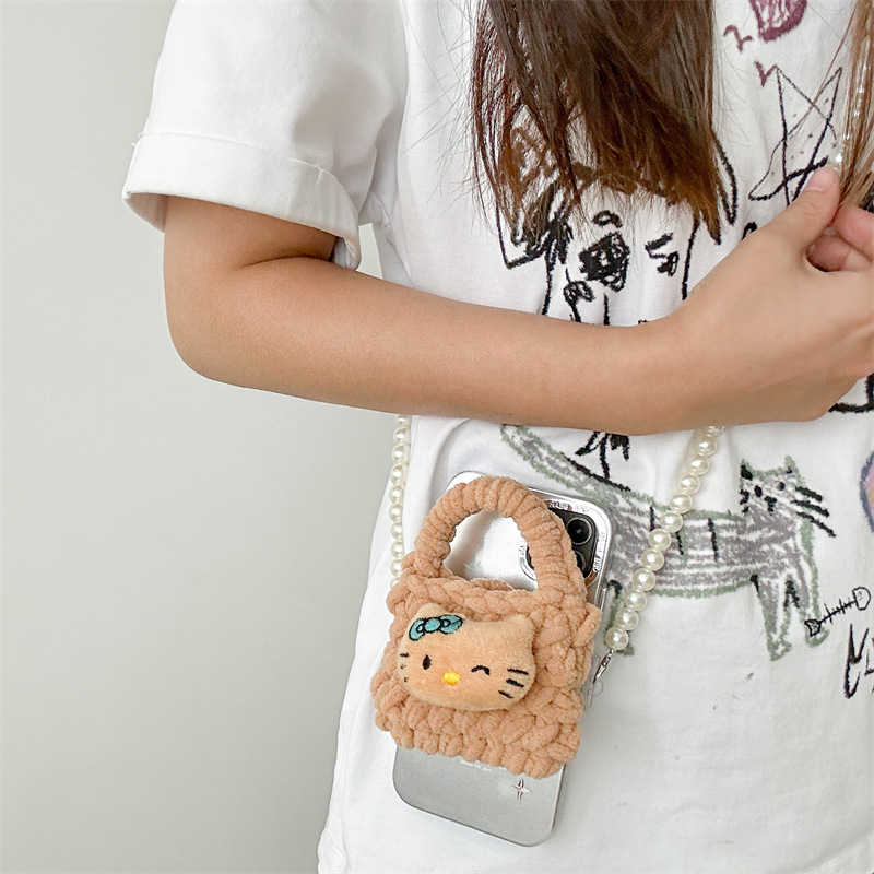 Xiaohongshu Hawaii black leather kt cat anti-fall headphone bag protective cover plush mini coin storage bag